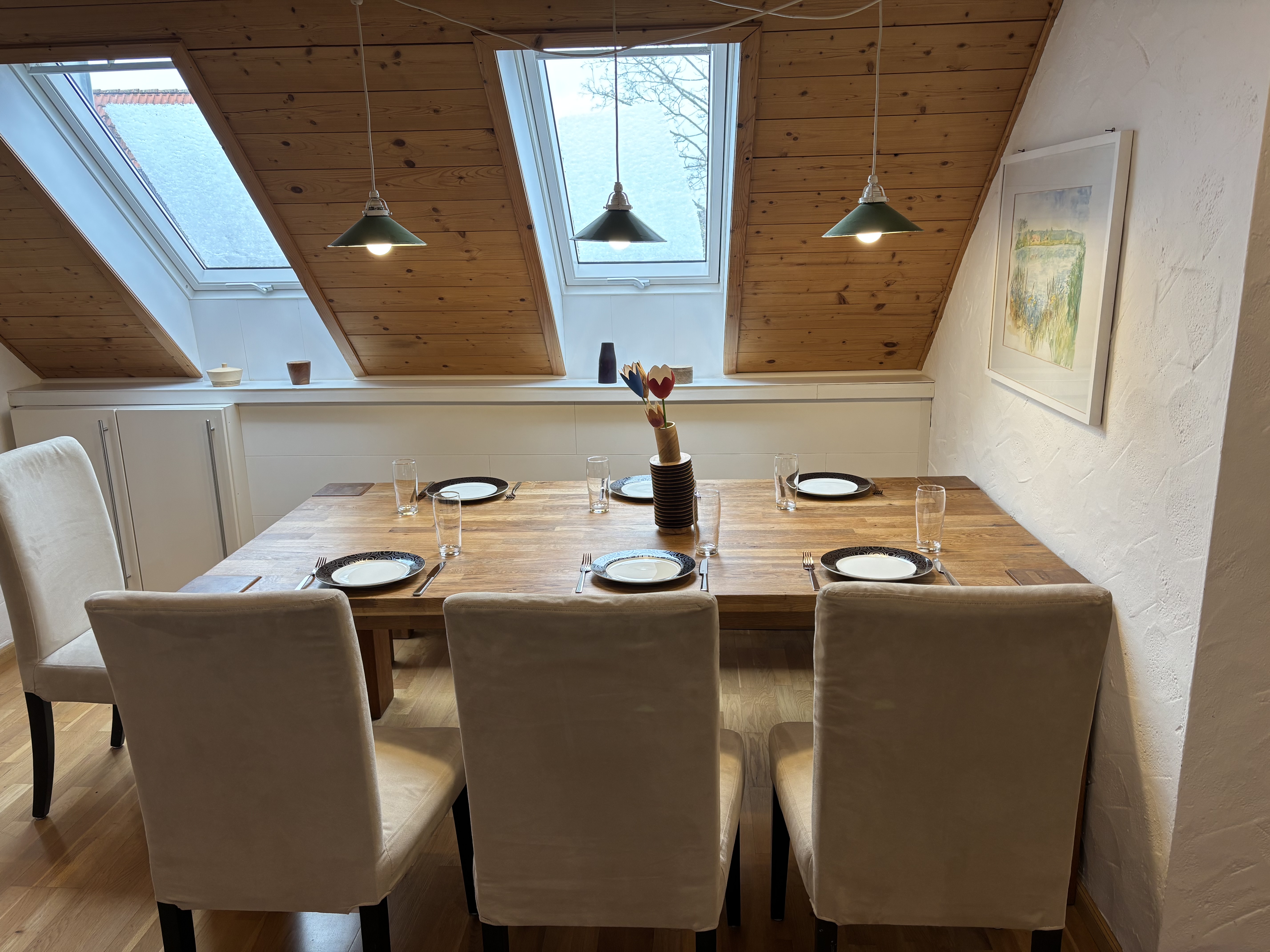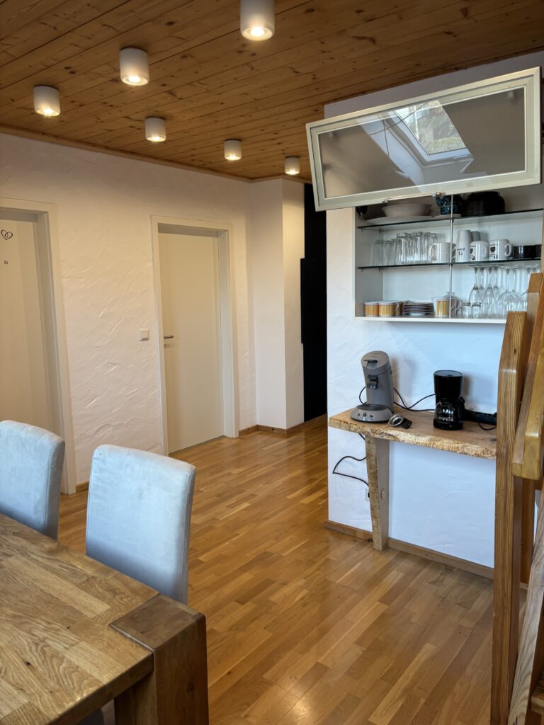 Die gut ausgestattete Küche verfügt über einen Geschirrspüler, Mikrowelle, Backofen, Kühlschrank, Handrührgerät sowie vielfältige Küchenutensilien. Geschirrtücher sowie Spülmittel und Spülmaschinentabs werden bereitgestellt.