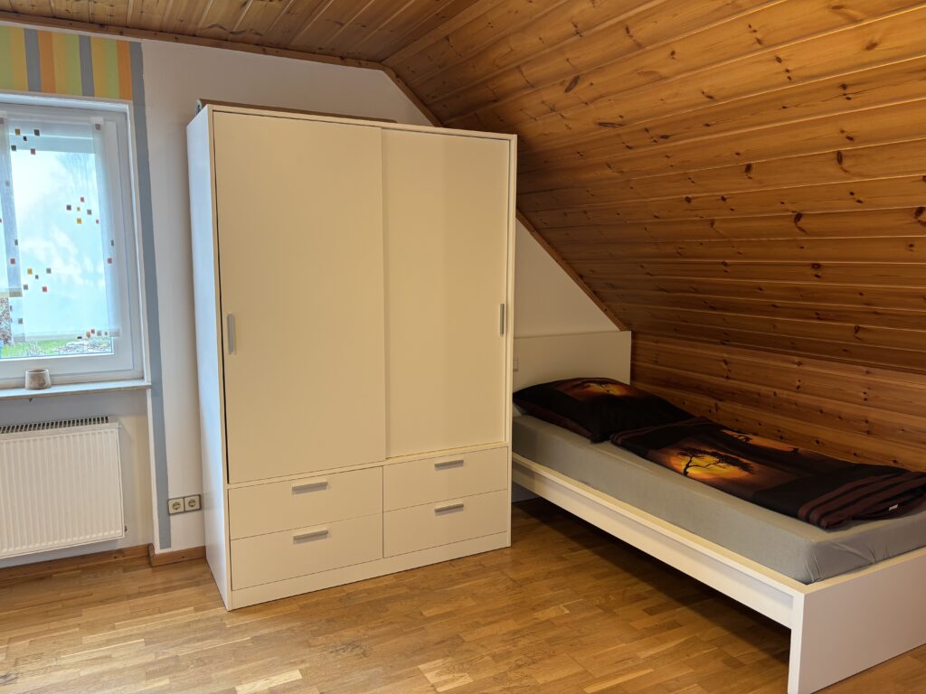 Ein Einzelbett und ein Stockbett bieten Platz für drei Personen. Bettwäsche inklusive.